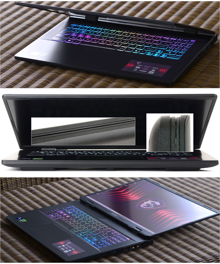 144Hz 주사율을 지원하는 보급형 모델들과 달리 240Hz 주사율을 지원해 게이머용 모니터 수준의 부드러운 영상을 즐길 수 있으며 400nit 의 높은 밝기를 지원해 어디서나 선명한 영상을 즐길 수 있다. 또한 화려한 컬러로 무장한 게이밍 키보드를 탑재해 타이핑 만족감을 한층 높였으며 프라이버시 셔터, 180도 회전 디스플레이, C타입 단자의 PD충전과 디스플레이 출력 등 다양한 고급기능을 적용해 편의성을 한층 높였다.