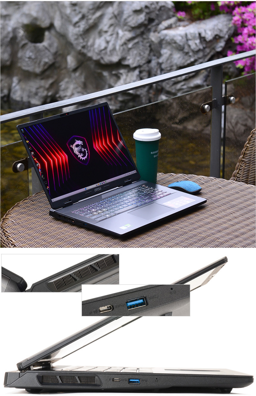 또한 기본 탑재된 지포스 RTX 4070 랩탑 GPU는 파노라믹 레이 트레이싱을 지원해 현실적이고 디테일한 영상을 선사하며 AI 기반의 DLSS 3.5 지원으로 뛰어난 화질을 구현하면서도 확연히 높은 프레임으로 최신 게임을 더 부드럽게 즐길 수 있다. 특히 MUX 스위치가 내장된 모델로 내장그래픽의 간섭없이 더 강력한 성능으로 게임을 즐길 수 있다.
