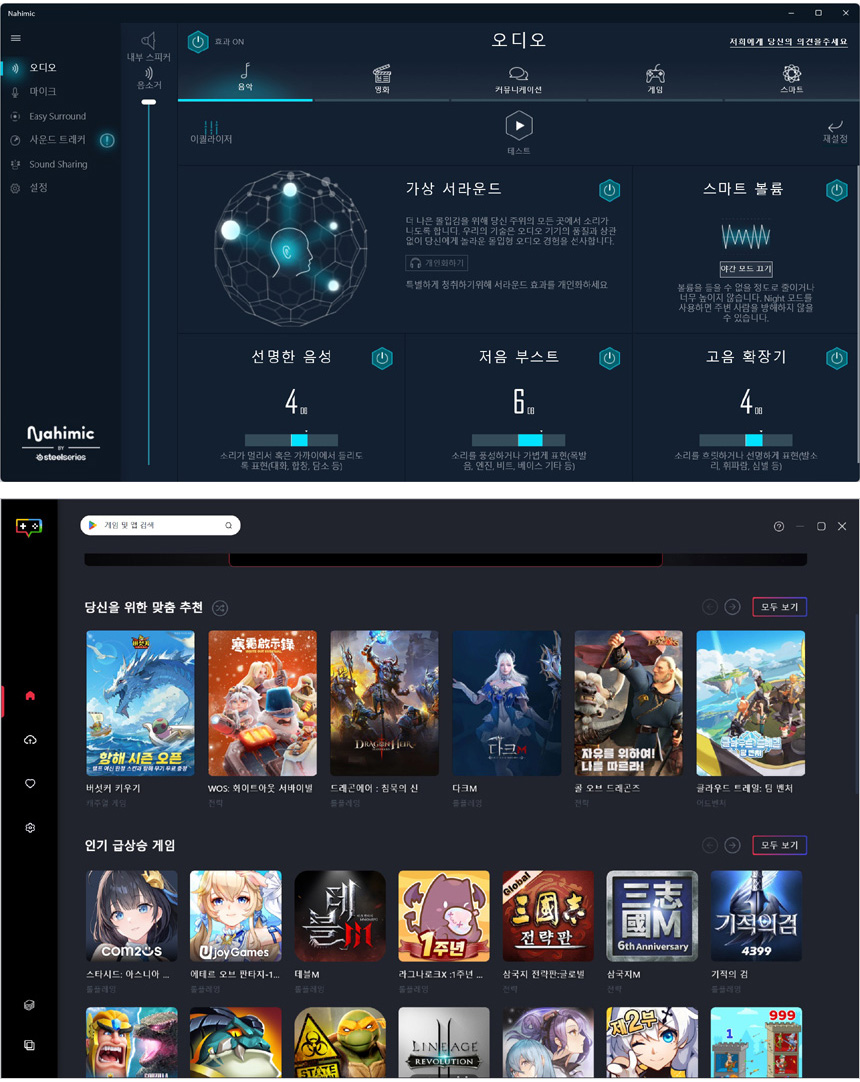 MSI App 플레이어 지원으로 안드로이드 스마트폰에서 사용하던 앱이나 게임을 노트북에서 즐길 수 있으며 나히믹 오디오 지원으로 사용자에 맞는 최적의 음색을 설정할 수 있다. 특히 나히믹에서는 블루투스 스피커 연결시 본체 스피커와 연동해 향상된 입체음향을 제공하는 이지 서라운드 기능이 추가되었다.