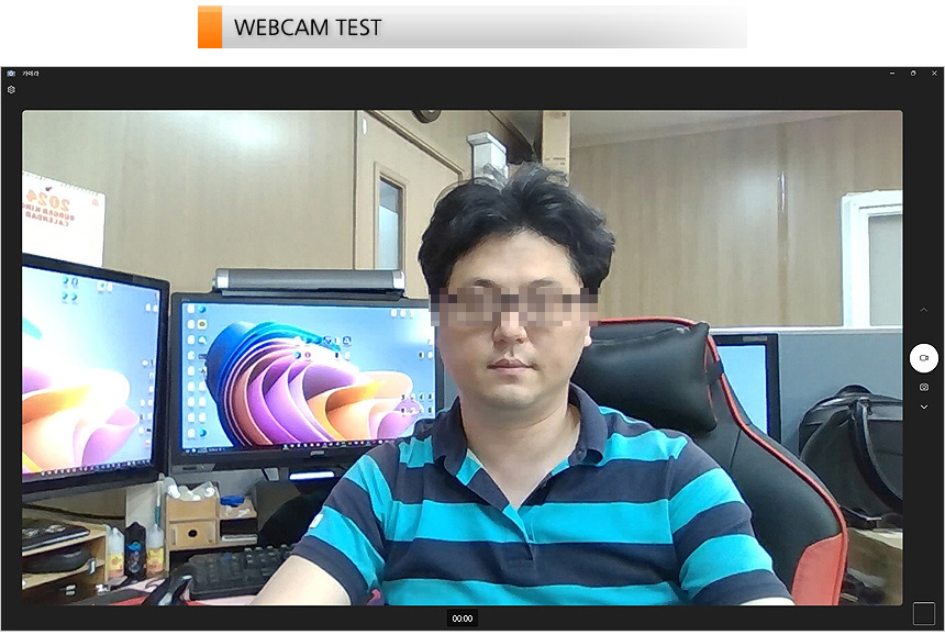 HD 웹캠의 화질을 확인하고 있는 모습으로 디테일이나 화질은 FHD 웹캠과 비교해 떨어지지만 화상회의나 사진 및 동영상 촬영등은 충분히 가능한 수준의 영상을 보여주었다.