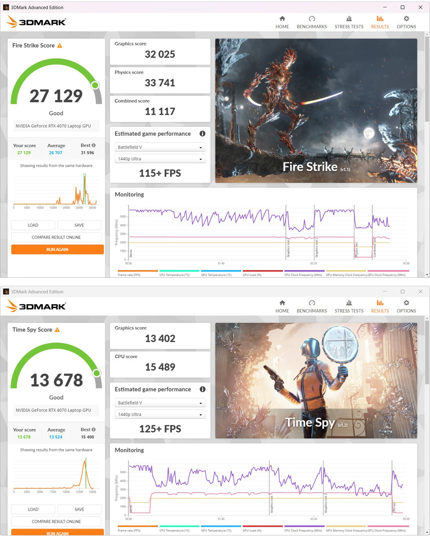화려한 스펙을 자랑하는 노트북 답게 100만원대의 게이밍 노트북과는 확연히 다른 성능을 보여주었다. 대부분의 게임을 WQXGA 고해상도에서 부드럽게 즐길 수 있으며 해상도를 WUXGA 로 낮추면 240Hz 주사율도 충분히 활용할 수 있다.