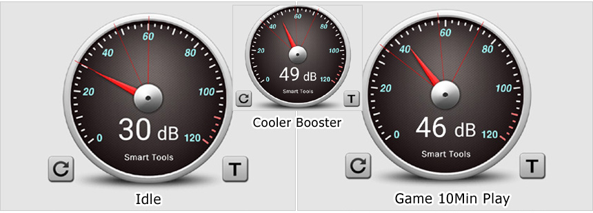 팬소음 테스트를 진행하고 있는 모습으로 아이들이나 캐주얼한 작업에서는 생활소음에 묻혀 팬소음이 거의 들리지 않았으며 게임을 실행하면 팬이 빠르게 동작해 팬소음이 커지는 것을 확인할 수 있었다. 높은 성능만큼 팬소음도 큰 노트북이다. 팬소음이 부담스럽다면 퍼포먼스나 팬속도 설정을 통해 팬속도를 줄이기 바란다. @ 팬이 최대 속도로 동작하는 쿨러부스트를 실행하면 49dB 정도까지 팬소음이 커지는 것을 확인할 수 있었다.