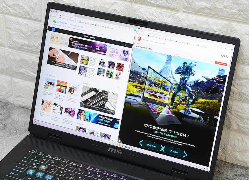 4K 동영상을 이용해 멀티미디어 테스트를 진행하고 있는 모습으로 IPS 타입 패널에 WQXGA 해상도 지원으로 일반 노트북과는 확연히 다른 디테일과 선명함을 보여 주었으며 17형 대화면에 슬림 베젤 탑재로 높은 몰입감을 경험할 수 있었다. 특히 사운드 퀄리티도 뛰어나 만족스럽게 영상을 즐길 수 있었다.