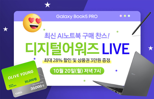이번 방송에서는 최신 인텔 코어 울트라 시리즈 2와 WQXGA+ Dynamic AMOLED 2X 터치스크린을 탑재한 삼성 갤럭시북5 프로?프로360을 대상으로 다양한 혜택이 제공된다.