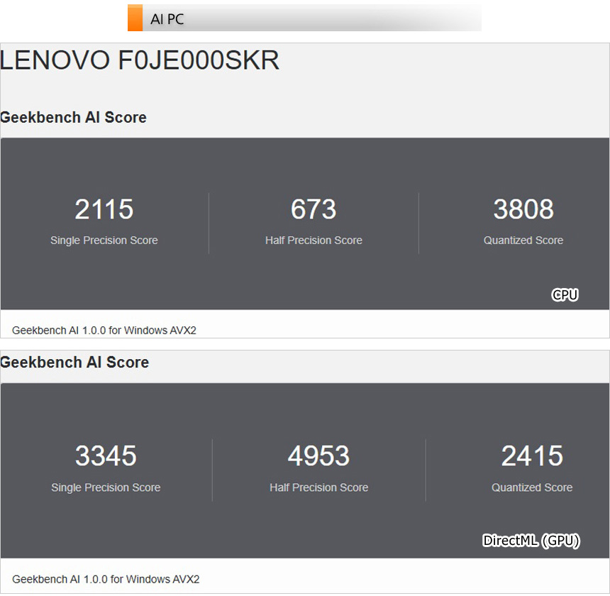 AI 전용 벤치마크 툴을 이용해 AI 성능 테스트를 진행하고 있는 모습으로 고성능 프로세서가 장착된 모델답게 높은 스코어를 보여주었다.