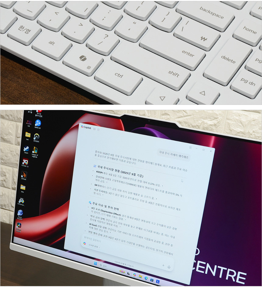 코파일럿이 설치되어 있고 키보드에서 전용키를 지원해 빠르게 프로그램을 실행할 수 있다. 최근 업무용으로 코파일럿을 사용하고 있는데 궁금한 부분들을 빠르게 답변해 주어 큰 도움이 되고 있다. AI 가 막막하게 느껴진다면 우선 코파일럿과 친해져 보기 바란다.