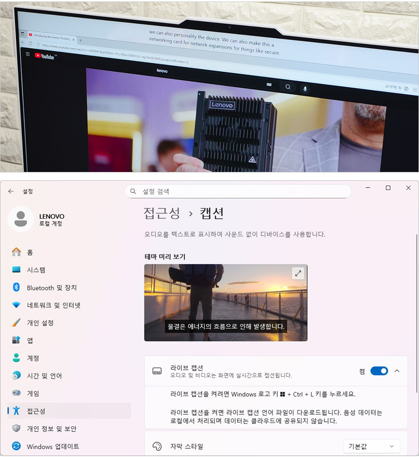 AI 가 음성을 텍스트로 변환해 주는 라이브 캡션 기능을 사용할 수 있다. 다양한 언어의 오디오 자막을 텍스트로 표시해 주어 사무실 등에서 스피커나 이어폰을 사용하기 힘들 경우나 화상회의 에서 적극적으로 사용하기 바란다. (영어 뿐만 아니라 한국어도 지원한다.)