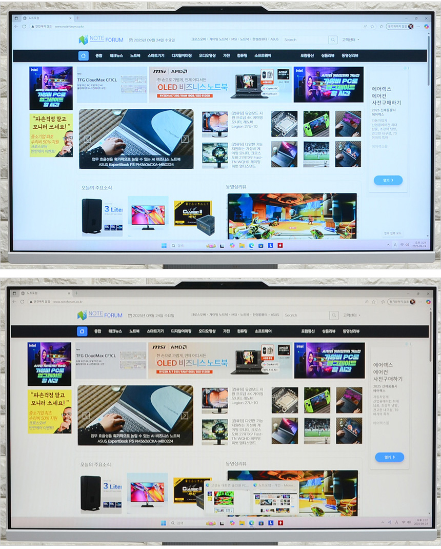 밝고 선명한 대화면 IPS 디스플레이를 탑재한 것도 장점이라 할 수 있다. 27형 대화면을 지원하고 3면 슬림베젤을 적용해 시원한 영상을 즐길 수 있었으며 100Hz 의 높은 주사율을 비롯해 안티글레어 타입과 아이케어 기술까지 더해져 테스트 내내 눈이 무척 편했다.