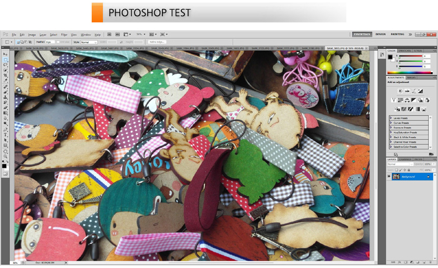 포토샵을 이용해 사진편집 테스트를 진행하고 있는 모습으로 고성능 프로세서와 16GB 메모리 탑재 모델답게 부드럽게 실행되는 것을 확인할 수 있었다. 웹디자인 등의 작업용으로도 충분히 활용할 수 있는 모델이다. @ 총 46장의 원본 사진 (총 180MB) 을 로딩하는데 걸리는 시간을 측정했는데 18초가 소요되었다.