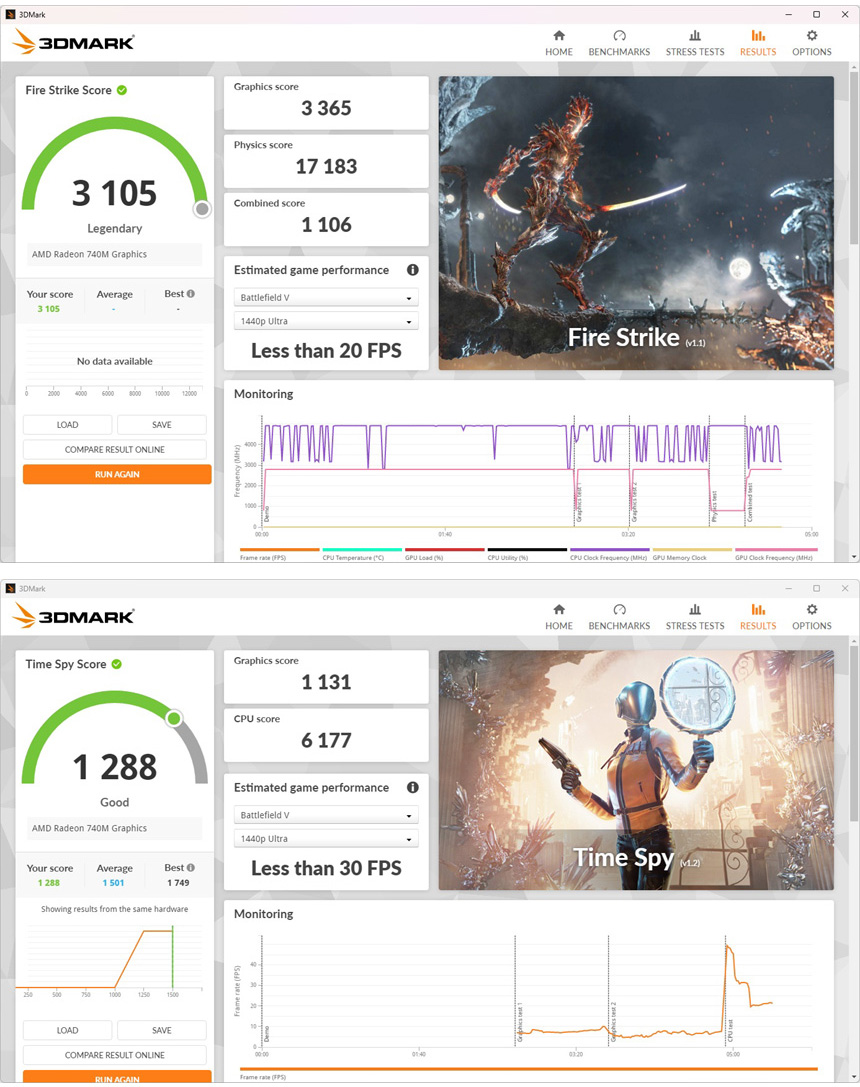 3DMARK를 이용해 3D 성능을 확인하고 있는 모습으로 가벼운 온라인 게임은 충분히 실행할 수 있는 스코어를 보여주었다.