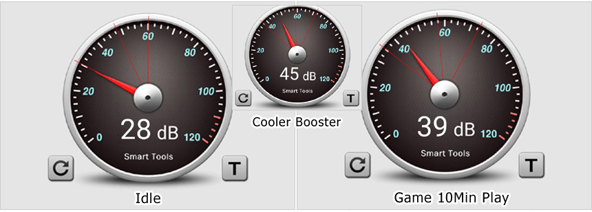 팬소음 테스트를 진행하고 있는 모습으로 아이들이나 캐주얼한 작업에서는 주변소음에 묻혀 팬소음이 들리지 않았으며 게임을 실행하면 팬이 최대 속도로 동작해 팬소음이 발생한다. (팬소음이 들리기는 하지만 다소 크지만 스피커 사운드에 팬소음이 묻혀 크게 신경 쓰이지 않았다.) @ 측정값은 사무실의 생활소음을 포함한 팬소음이다. 이점 참조 바란다.