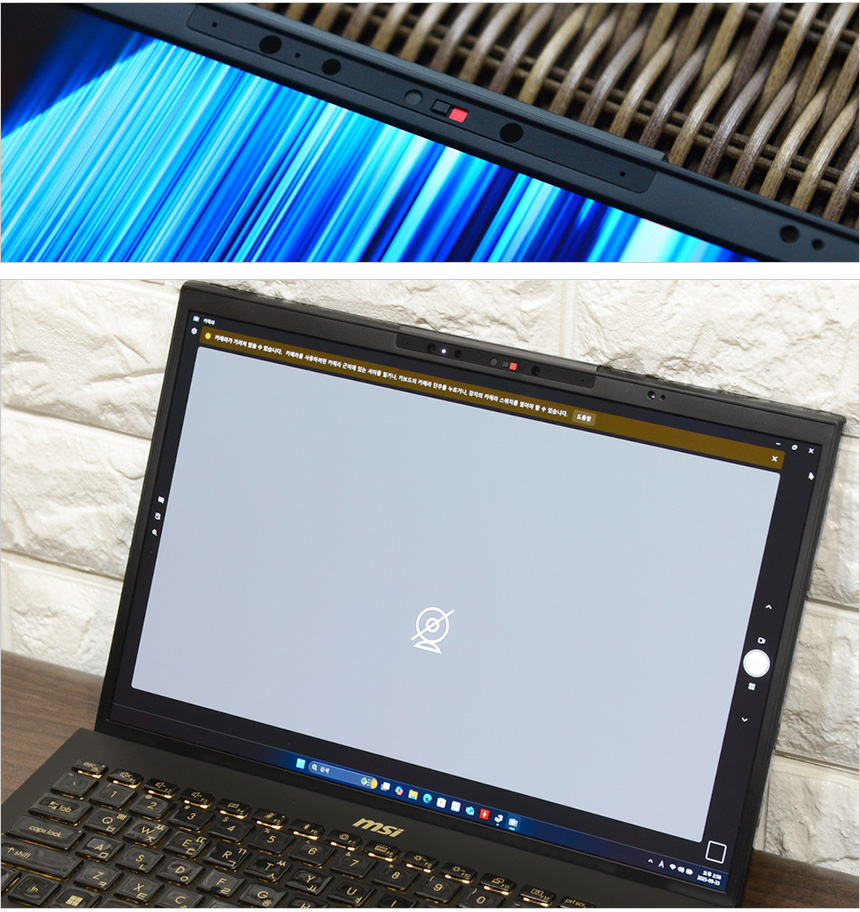 5MP 웹캠의 화질을 확인하고 있는 모습으로 보급형 노트북에 설치된 HD 웹캠을 압도하는 선명함과 디테일을 보여주었다. 화상회의는 물론 촬영 등의 용도로 유용하게 활용할 수 있을 것이다.