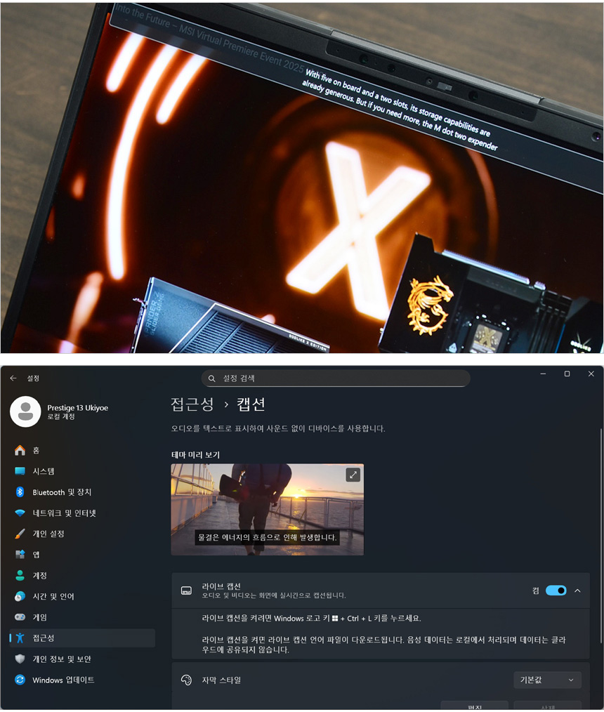 AI 가 음성을 텍스트로 변환해 주는 라이브 캡션 기능을 사용할 수 있다. 한국어를 포함한 다양한 언어의 오디오 자막을 텍스트로 표시해 주어 사무실 등에서 스피커나 이어폰을 사용하기 힘들 경우나 화상회의 에서 적극적으로 사용하기 바란다.