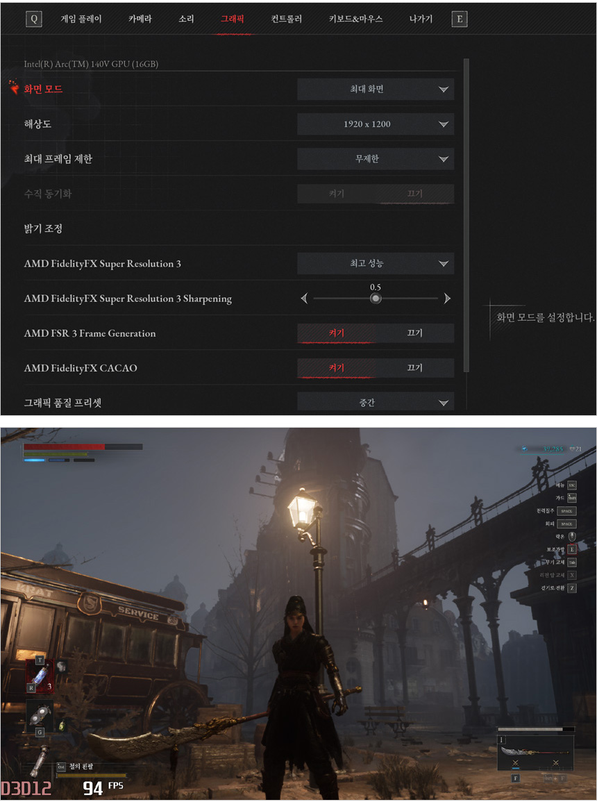 P의 거짓을 중간 옵션에서 플레이 하고 있는 모습으로 (FSR3 최고 성능) 75-96 프레임으로 게임을 즐길 수 있었다. 불편없이 게임을 플레이 할 수 있을 것이다.