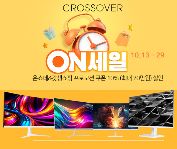 크로스오버는 자사의 인기 모니터 34종을 대상으로 10월 롯데온 온쇼페&갓생쇼핑 프로모션을 진행한다고 밝혔다.