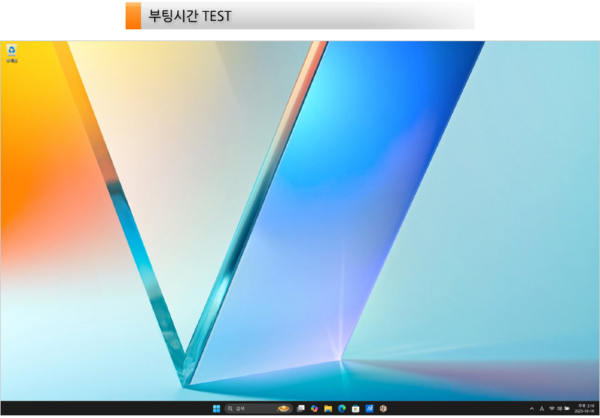 노트북이 완전히 꺼진 상태에서 전원 버튼을 눌러 바탕화면이 노출될 때 까지의 시간 (콜드부팅) 을 측정했는데 11초가 소요되는 것을 확인할 수 있었다. 기다림의 지루함 없이 노트북을 사용할 수 있을 것이다.