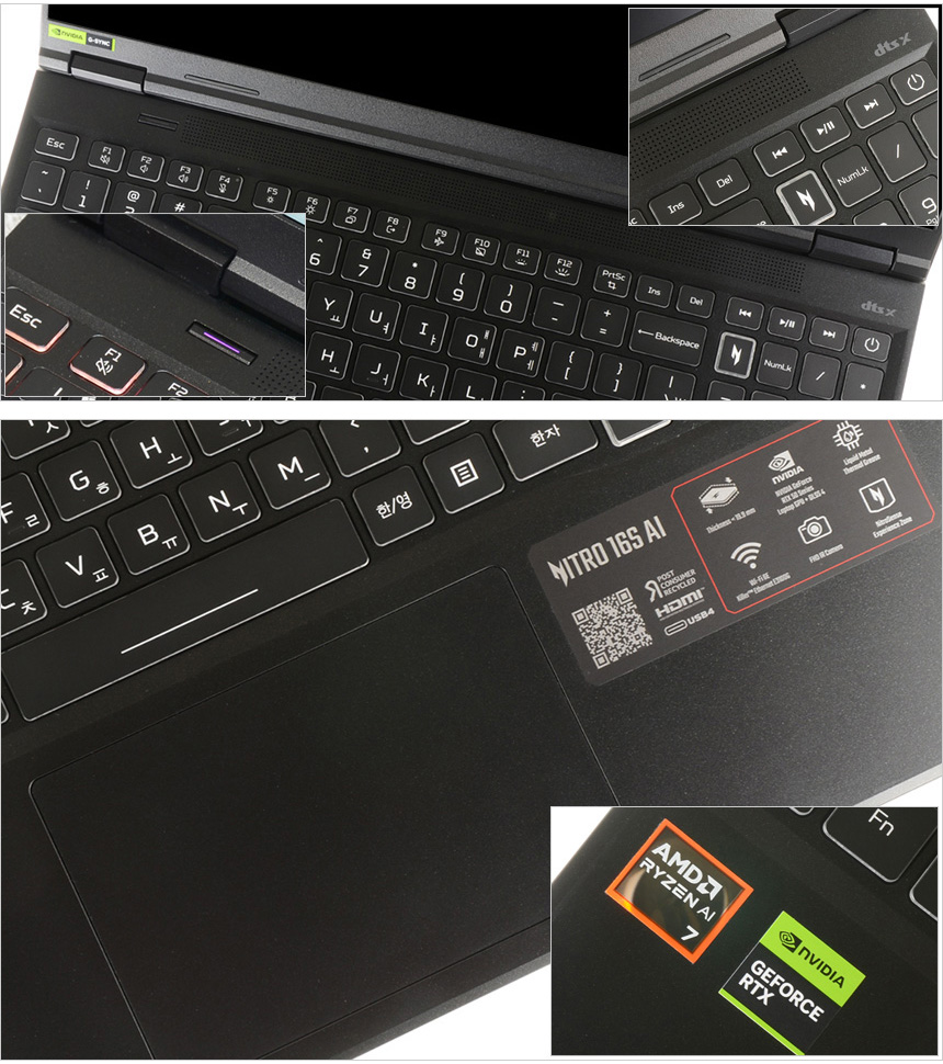 이번에 리뷰를 진행 할 에이서 니트로 16S AI AN16S-61-R96T 는 게임, 작업, 학습, AI 등 다용도로 활용할 수 있는 고급형 노트북을 찾고 있는 유저들에게 적합한 모델로 AMD 라이젠 AI 7 HX 350 프로세서 와 32GB 대용량 메모리, RTX 5060 랩탑 GPU 탑재로 최신 게임을 상위 옵션에서 부드럽게 플레이 할 수 있으며 생성형 AI 작업용으로도 손색이 없다. 뿐만 아니라 16형 대화면에 WQXGA 고해상도를 지원하는 180Hz 디스플레이가 탑재되어 게임은 물론 작업용으로도 편하게 사용할 수 있다.