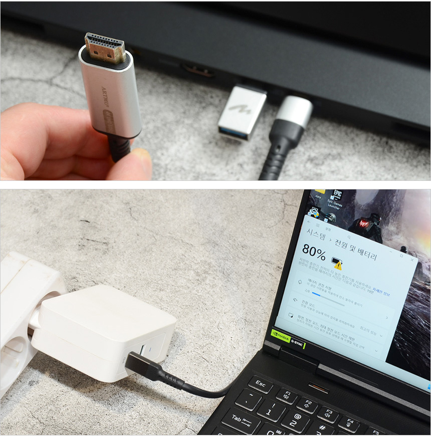 휴대성에 특화된 노트북은 아니지만 상단에서 언급한 것과 같이 백팩을 사용하면 충분히 들고 다니며 사용할 수 있다. 특히 고성능 노트북임에도 PD충전을 지원해 캐주얼한 작업시에는 무거운 전원 어댑터를 가지고 다닐필요 없이 PD 충전기로 전원을 공급할 수 있다.