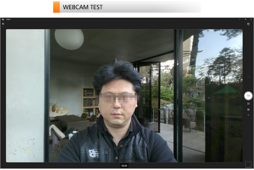 웹캠의 화질을 확인하고 있는 모습으로 FHD 해상도 지원으로 선명도나 디테일이 상당히 뛰어난 것을 확인할 수 있었다. AI 노이즈캔슬링도 지원할 뿐만 아니라 배경 블러처리와 시선고정, 자동 플레이밍 등을 지원해 편하게 화상회의를 실행할 수 있다.