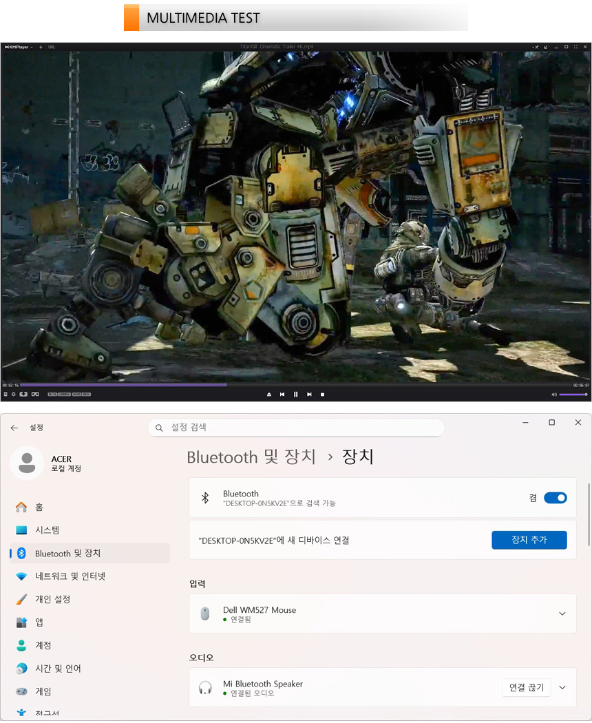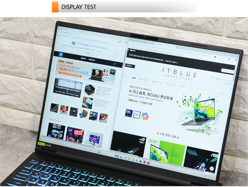 4K 동영상을 이용해 멀티미디어 테스트를 진행하고 있는 모습으로 16형 대화면에 슬림 베젤 지원으로 높은 몰입감을 경험할 수 있었으며 300nits 밝기의 IPS 패널 탑재로 밝고 선명한 영상을 즐길 수 있었다. 스피커 사운드도 상당히 훌륭한 노트북으로 동영상 감상용으로도 만족스럽게 사용할 수 있을 것이다.
