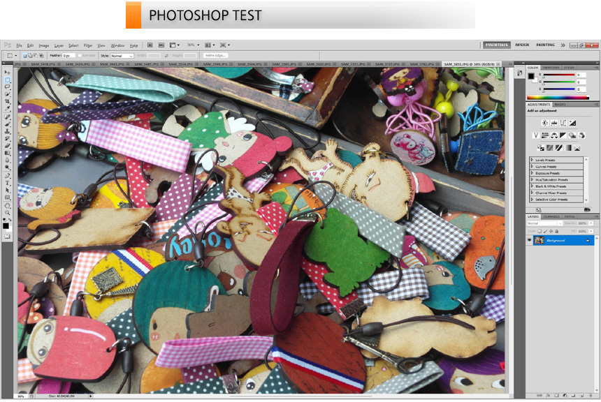포토샵을 이용해 원본사진 편집 테스트를 진행하고 있는 모습으로 부드럽게 작업할 수 있었다. 16형 대화면에 IPS 디스플레이, 32GB 듀얼채널 메모리가 적용된 모델로 웹 디자인 등의 작업도 충분히 가능하다. @ 총 46장의 원본 사진 (총 180MB) 을 로딩하는데 걸리는 시간을 측정했는데 15초가 소요되었다.